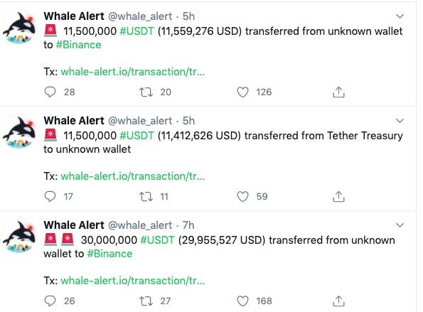 USDT inflows from Tether Treasury. Source: Twitter/@Whalealert
