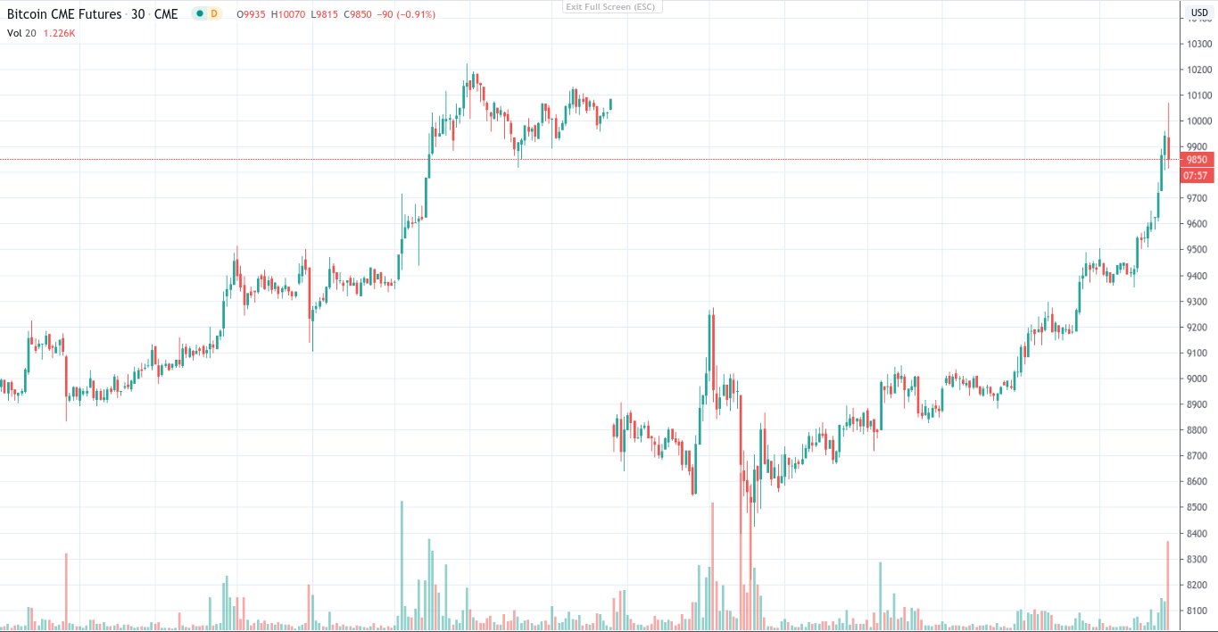 CME Bitcoin futures 1-week chart showing gap. Source: TradingView